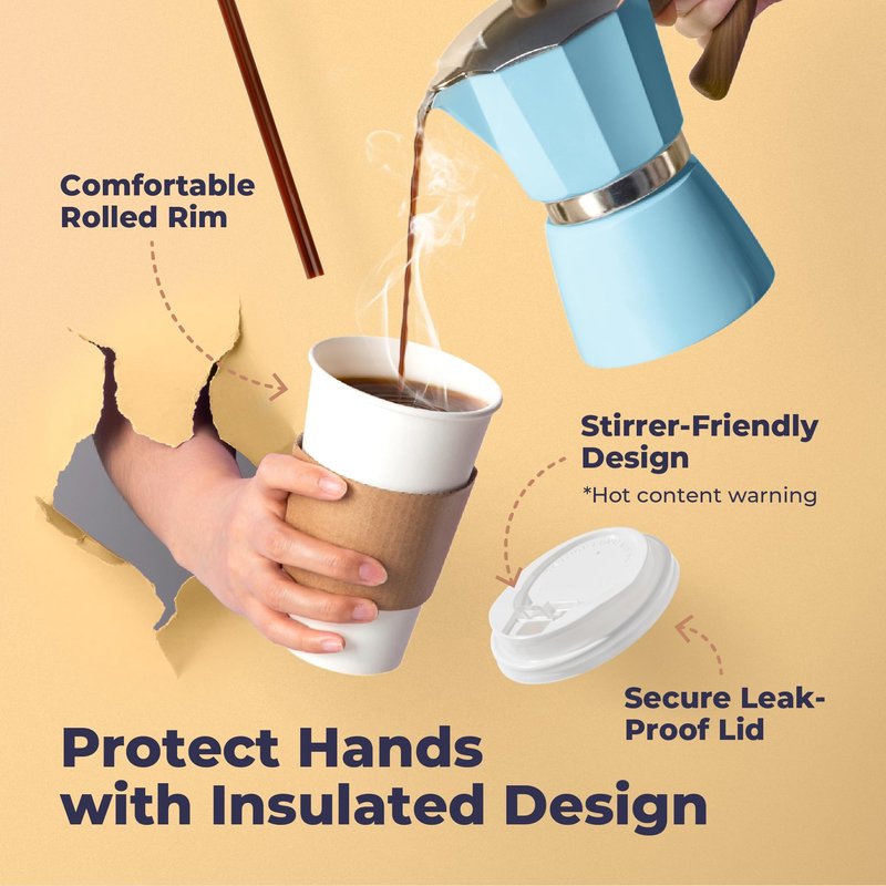 - Premium Coffee Cups Stay Leak-Free for over 7 Days: The paper coffee cup is made from superior-quality, eco-friendly, and