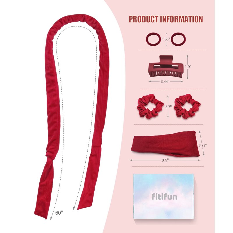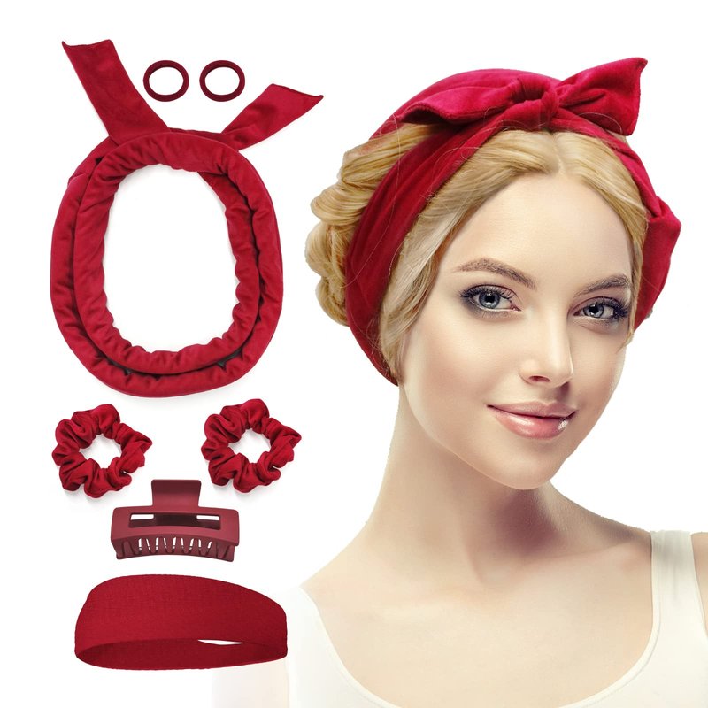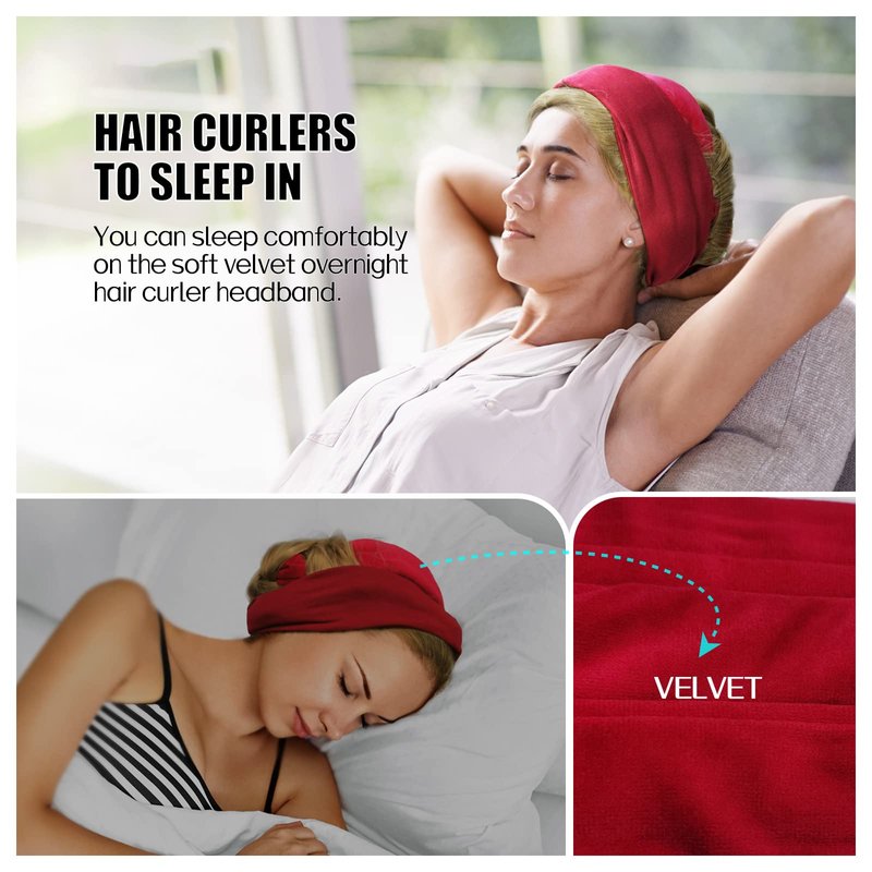 Fitifun Hair Curlers-61" Extra Long No Heat Curling Headband Hair Curlers to Sleep In, Heatless Hair Curlers for Long Hair Soft Velour Overnight Hair Curlers Heatless Curling Set(Red)