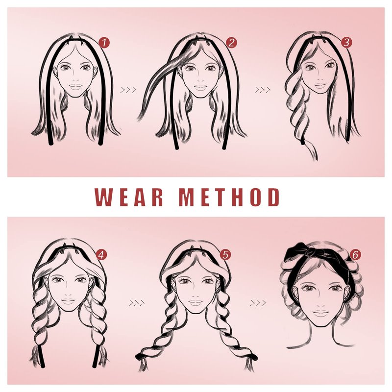 - How to Use 1. Lightly wet dry hair with a spray bottle or wet brush. Or blow dry until slightly damp after showering. 2. Use bobby pins to fix the middle of the curling iron on the top of the head. 3. Start braiding hair from one side and wrap it around this curling iron. When the hair is braided to the end, secure it with a hair tie. 4. Cross the ends of the hairband behind the head and tie them into a knot in front of the clip on top of the head and remove the clip.