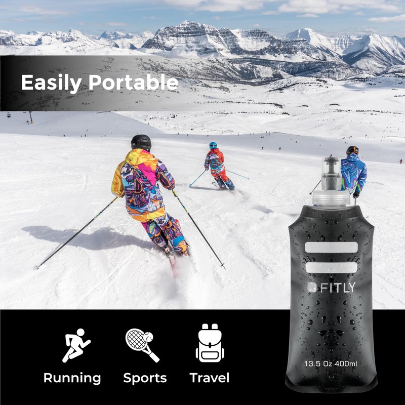 - 3 COMBO PACK OF SOFT FLASKS: FITLY's triple pack of soft flasks includes three sizes - a small 5oz/150ml, a medium 8.5oz/250ml and a larger model of 13.5oz/400ml. Our collapsible water bottle is a compact and eco-friendly way to stay hydrated on the move! The soft water bottle is the perfect hydration tool for active individuals. Our soft flasks shrink as you drink, taking up minimal space and won’t slosh around, making it perfect for runners and vigorous activities.