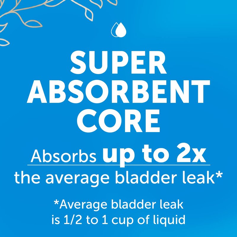 - Advanced Fluid Distribution feature quickly absorbs and disperses liquid away from the top layer of the bladder leakage pad keeping skin dry, and Leak-Stop Edges help keep clothes dry and protected