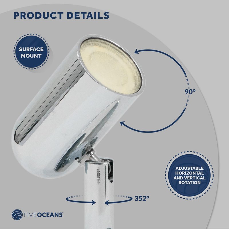 Five Oceans LED Reading Light, RV Interior Lights, LED Light Fixtures, Rocker On-Off Switch, 12-30V, Warm White LED, for RV, Boat, Camper, Motorhome, Trailer, Truck - FO3733