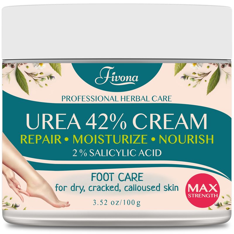 - Nourish and Soften Your Feet - Experience the ultimate relief for rough, cracked skin with our specially formulated 42% Urea Foot Cream enriched with 2% Salicylic Acid, Tea Tree, and Aloe Vera Extract. Fivona Foot Cream deeply moisturizes and hydrates dry skin.