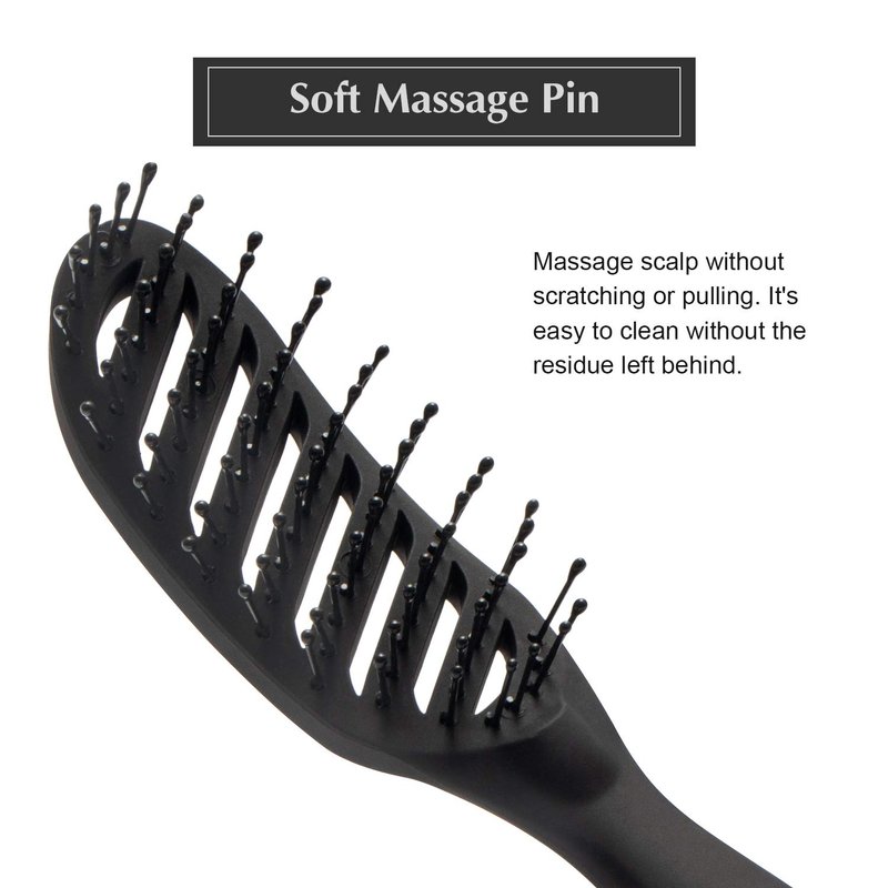 - STYLING MORE CONVENIENT - This curved vent brush is specialty of styling, the curved design is designed to follow the contours of the head that allows every pin to be fully engaged during brushing. The Nylon pin can get through thick even tangles hair, straighten or curling, easy to make any type hair styling.