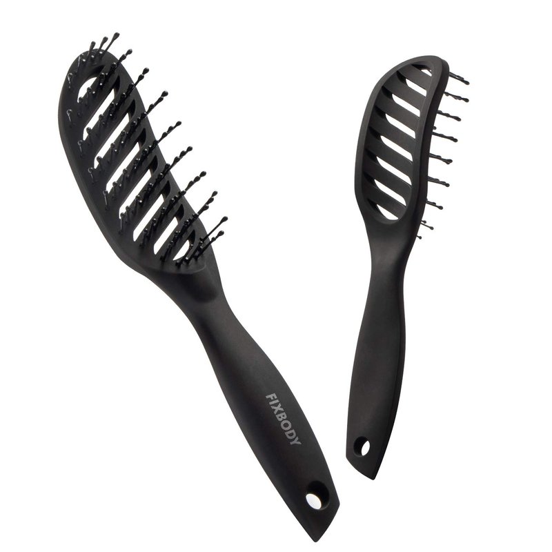 FIXBODY Curved Vent Brush for Men & Women, Curved and Vented Brush for Blow Drying, Styling & Solon, Detangling Hair Brush for Short Thick Tangles Hair, Both Wet & Dry, Black