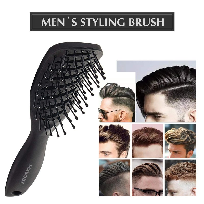FIXBODY Curved Vent Hair Brush for Blow Drying, Styling and Solon, Detangling Hair Brush for Short Thick Tangles Hair, Both Men and Women, Black