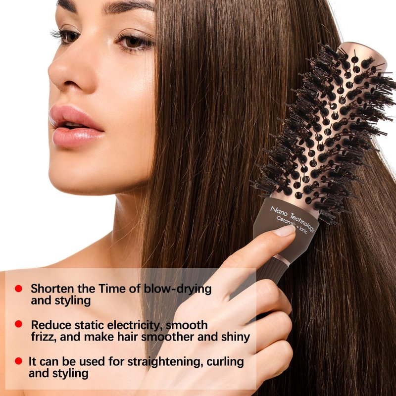 Round Brush for Blow Out, Boar Bristle Round Hair Brush, Nano Lonic Ceramic Brush for for Blow Drying Quickly, 3 Inch Round Brush with Boar Bristles for Drying, Styling, Shine (Not Electrical)