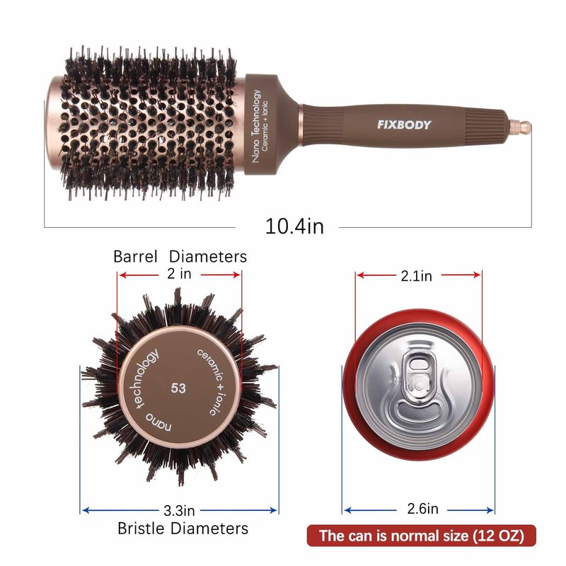 FIXBODY Hair Brush, Round Brush for Blow Drying, Curling, Styling, Nano Thermal Ceramic & Ionic Tech, Boar Bristle, 3.3 inch, 2 inch Barrel, for Women, Volume & Shine, Brown, Hair Brush for Thick Hair