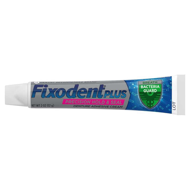 Want fresh breath and a strong denture hold? Try Fixodent Plus Scope denture adhesive cream. It combines a great hold with fresh breath by killing the odor-causing contaminants. The Precision Tip Nozzle gives you the control to apply the right amount of Fixodent just where you want it. Helps keep food particles from getting between dentures and gums, for a great fit and a strong, long hold with less ooze. Formulated with Breath Bacteria Shield Technology.