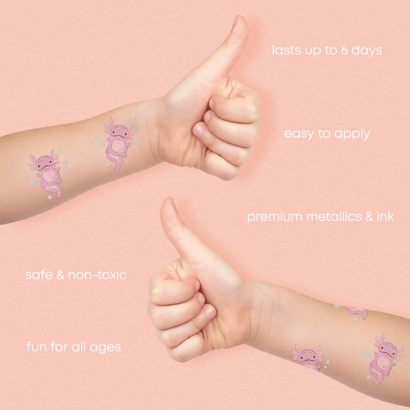 Flash Tattoos AXOLOTL set of 10 kids temporary tattoos | individually wrapped, Axolotl Party Favors, Axolotl Party Supplies, kids tattoo, classroom prize, birthday party supplies