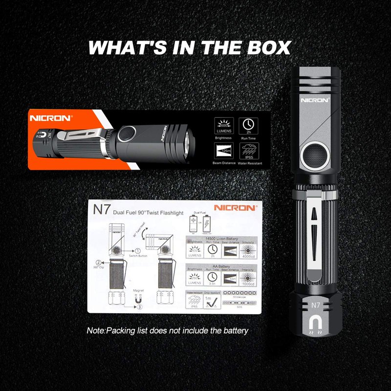 - WHAT YOU GET- N7 LED Flashlight,welcome guide manual,and our worry-free 12-month and friendly customer service. If you don't absolutely love your N7 LED Flashlight or if there are any issues with it.Please kindly apply for replace or refund