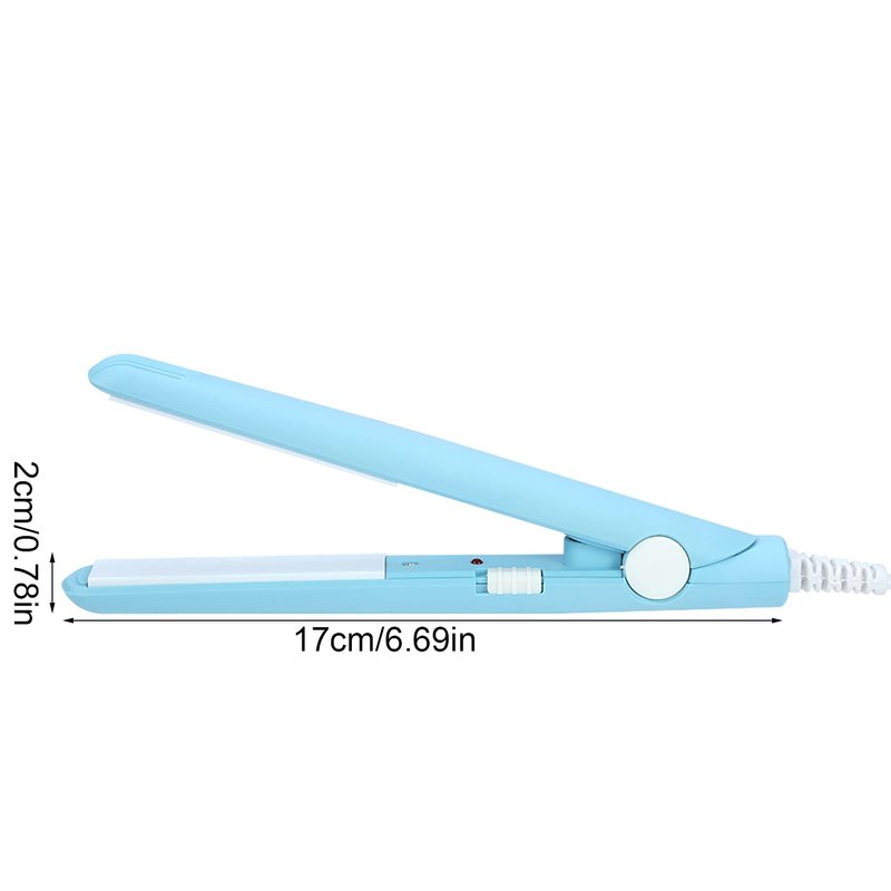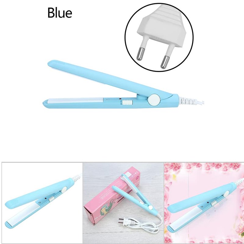 Flat Iron Curler, 2.8 X 0.7Inch Mini Simple Hair Straightener European Plug 2 in 1 Ceramic Tourmaline Plate Heating Flat Iron for Curly Hair Straight Hair(Blue)
