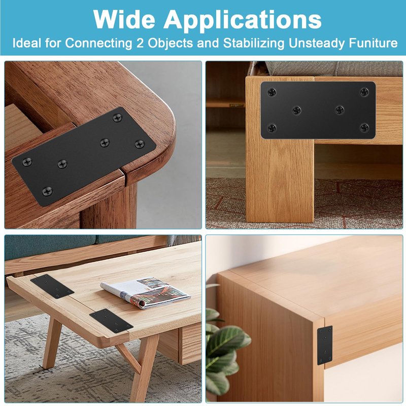 - Wide Applications: These mending brace connectors are essential hardware for home DIY projects or outdoor use. They are widely used to stabilize and reinforce wooden furniture, connect furniture joint corners, and support shelving planks, bookshelves, wooden fences, tables, beds, office desks, and wobbly furniture.