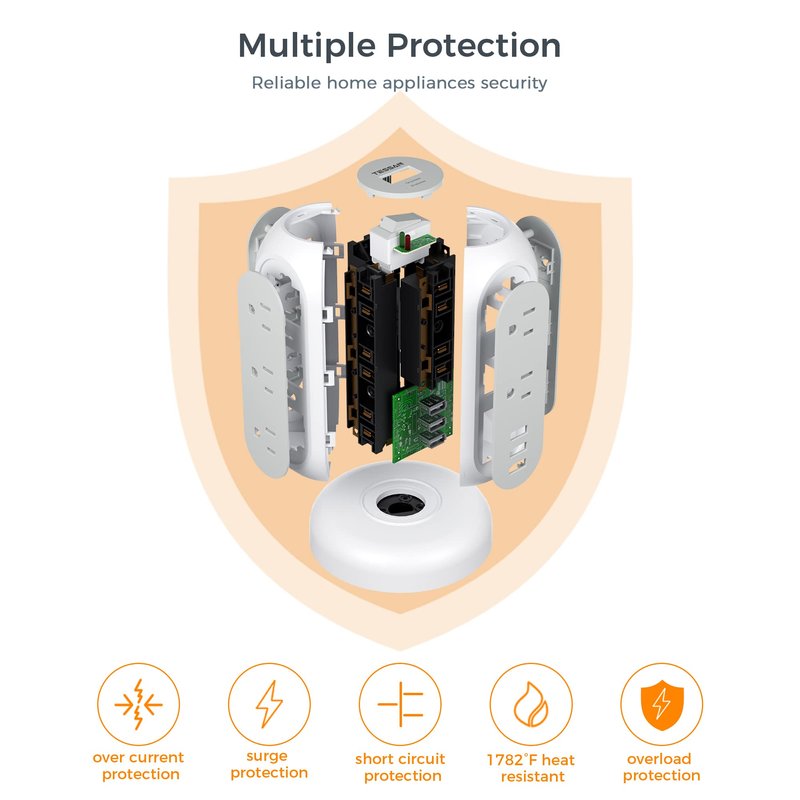 - Multiple Safety Protection: The power strip has surge protection (1050J), overload protection, short-circuit protection, over-current protection. The on/off switch can automatically shut off to protect your devices at home, office, college dorm when voltage surge is detected