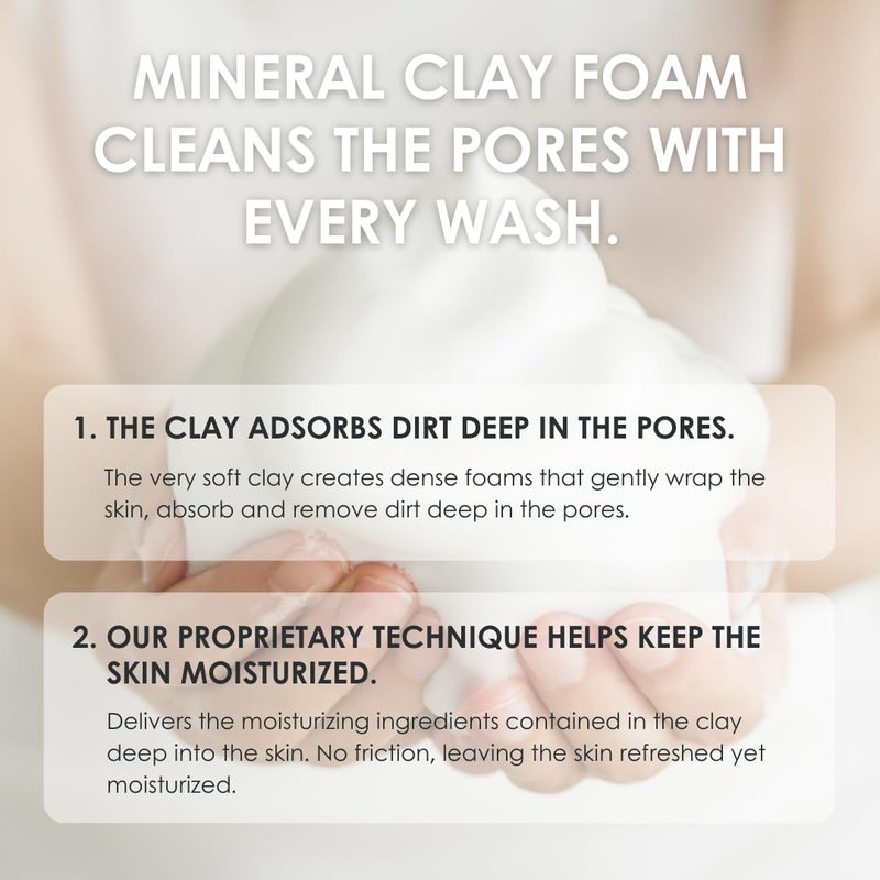 - Why is it effective?: Mineral Clay Foam introduced the two-step blending process, a cutting-edge advanced Japanese technology. This process, which mixes raw materials in two parts, makes it possible to create a high-quality foam with elasticity even with a small amount. This high-quality foam, can be made easily by anyone, leaving skin feeling refreshed and moisturized after washing. Formulated with sea silt as a raw material and rich in minerals, absorb dirt and moisturize the skin.