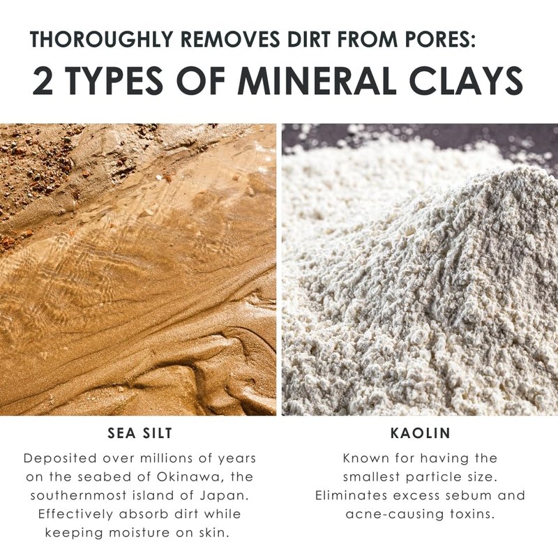 - Absorbs and removes dead skin cells and dirt deep inside pores. The dense foam acts as a cushion to minimize the burden on the skin. Mineral-rich clay, nurtured for many years at the bottom of the Japanese seabed, is formulated to remove dirt and impurities while providing moisture after washing. This gentle foaming formula is designed for sensitive skin.