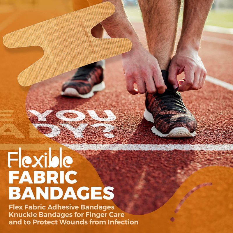 - TOP QUALITY DURABLE KNUCKLE BANDAGES: Our Neutral tan color bandages will stay in place longer while you live life all day at work or school, out in the garden and playing sports. They protect on all sides, sealing out dirt and germs. Flexible Fabric Adhesive Bandages measure 3" x 1", the Flexible Fabric Knuckle Bandages measure 3" x 1 1/2, and the Flexible Fabric Fingertip Bandages measure 2" x 1 3/4".