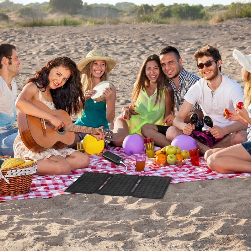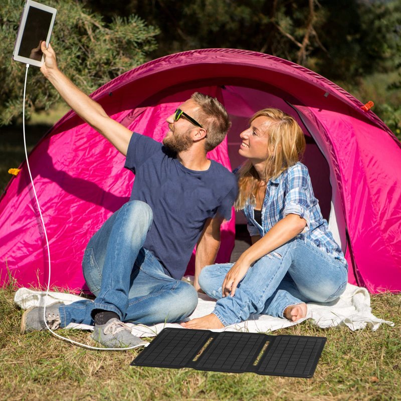 The 15W portable solar panel USB charger is the easiest way to charge your phone, power bank, and USB devices directly in the sunlight. Just plug to play, connect your USB device to the integrated USB port to be charged.