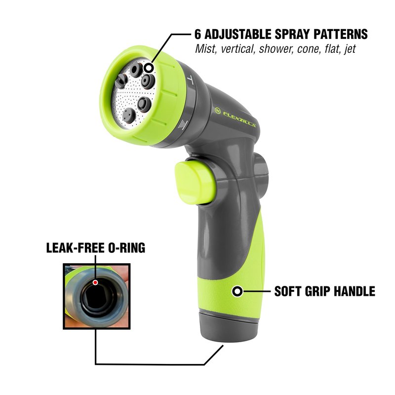 Flexzilla Garden Hose Nozzle - 6-Pattern Adjustable, NFZG64, ZillaGreen™