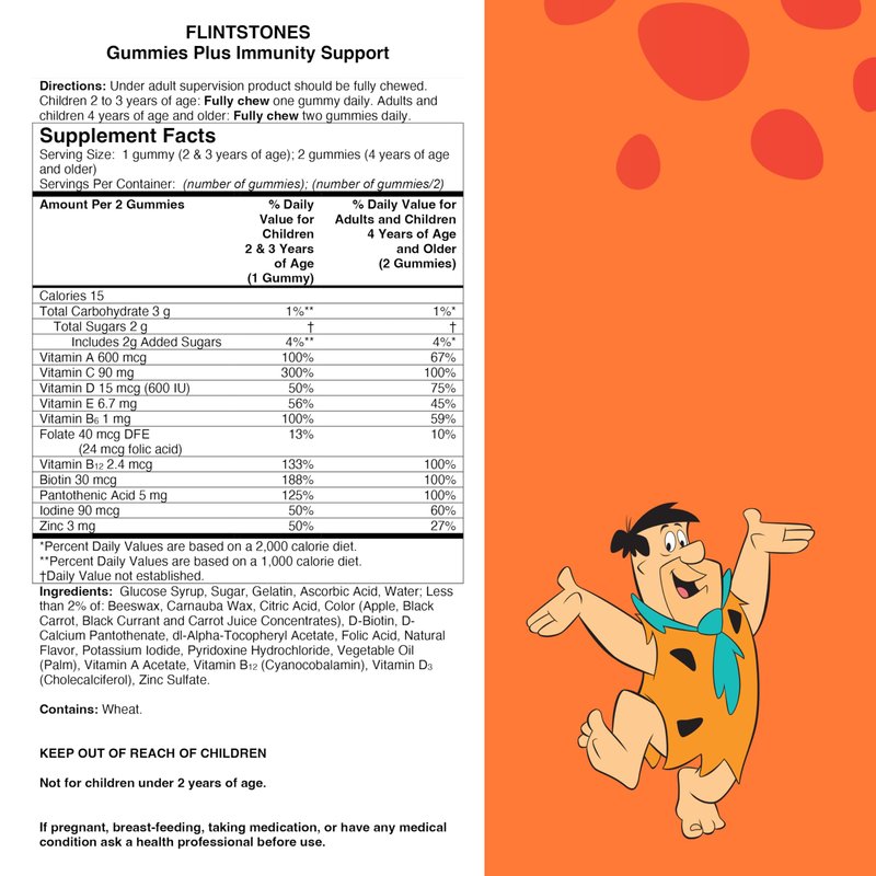 - Flintstones Gummies Multivitamins with Immunity Support* provide toddlers, children and teens with nutritional and immunity support in easy to chew, fruit flavored gummy vitamins.*