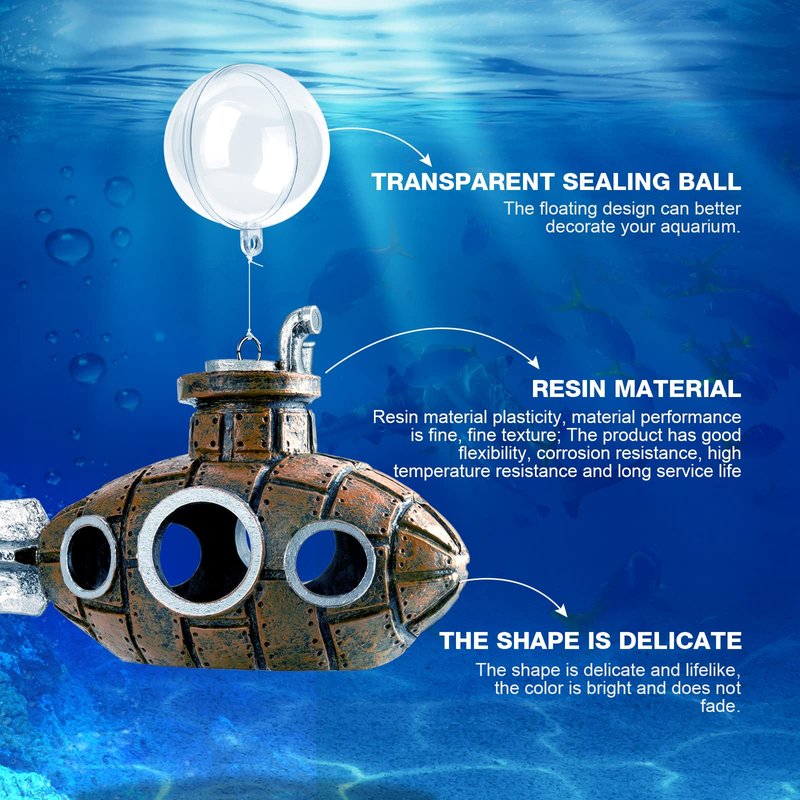 - 🐟【CUTE FLOATING SUBMARINE】: Our submarine tank decorations include a vintage mini submarine, a set of elastic crystal wire (92 feet long) and two clear floating balls. You don't have to worry about damage to the floating balls