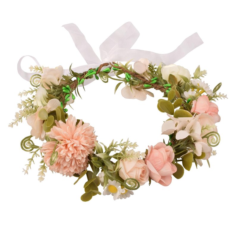 Floral Fall Artificial Wooland Wedding Flower Crown Bridal Headpiece Flower Girl Halo Photo Props FFL-01 (Coral)