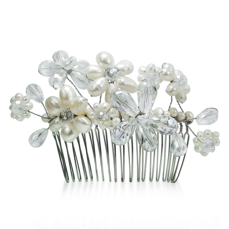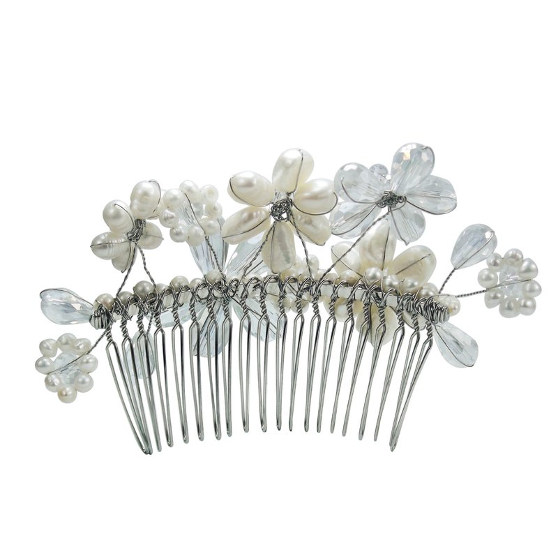 Floral Serenity Cultured Freshwater White Pearl and Fashion Crystals Bridal Hair Comb