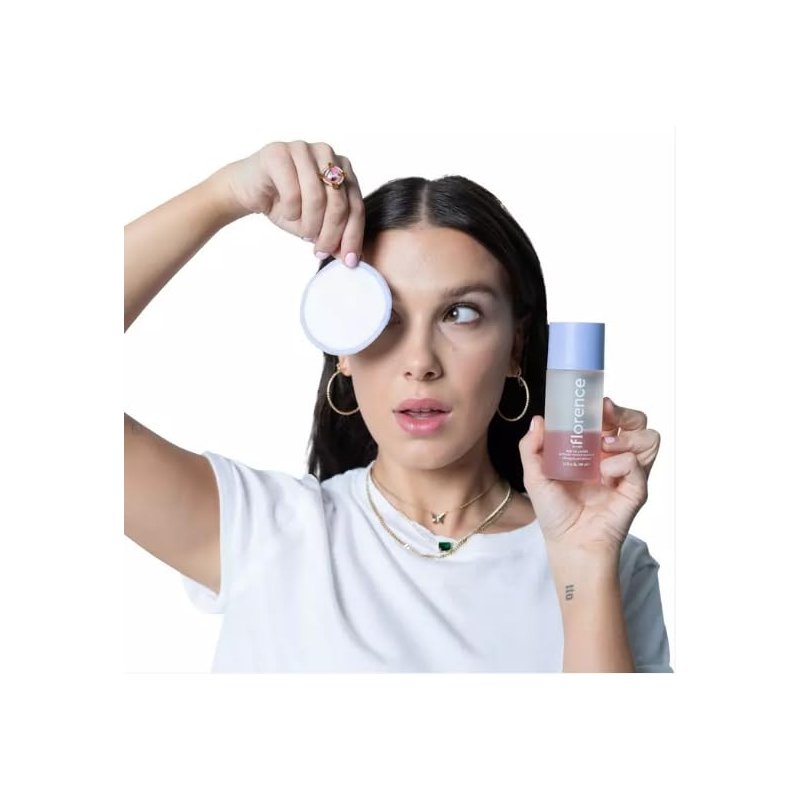 Florence by mills See Ya Later! Bi-Phase Eye Makeup Remover has an oil and water-based formula featuring a combination of rose canina fruit oil, which absorbs easily, sodium hyaluronate to help hydrate and renew delicate skin, and jojoba seed oil to help balance the skin's natural oils. Come Clean: Our bi-phase oil and water-based makeup remover will help you break free of long-wear and waterproof makeup. Nourishing ingredients leave the eye area supple and hydrated. Ingredient Spotlight: Rose Canina Fruit Oil: Absorbs easily and does not leave an oily residue. Best For: All Skin Types Long wear and waterproof formulas on eyes and lips. How To Use: Shake well to activate the bi-phase formula. Gently squeeze bottle to dispense product into a cotton pad. Hold for 10-15 seconds then gently begin wiping away. Rinse with water.