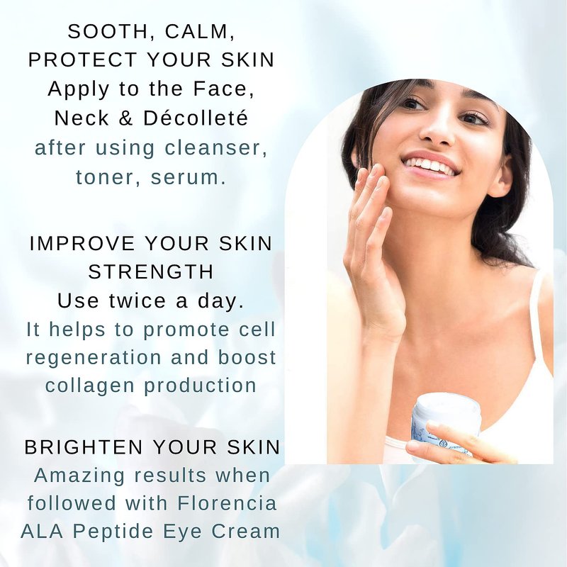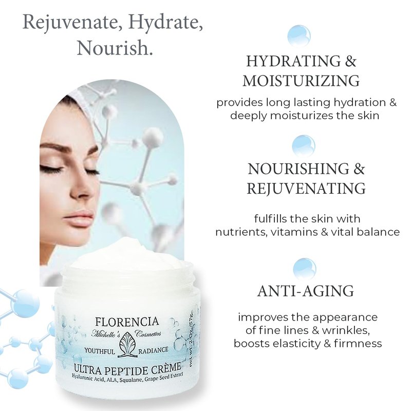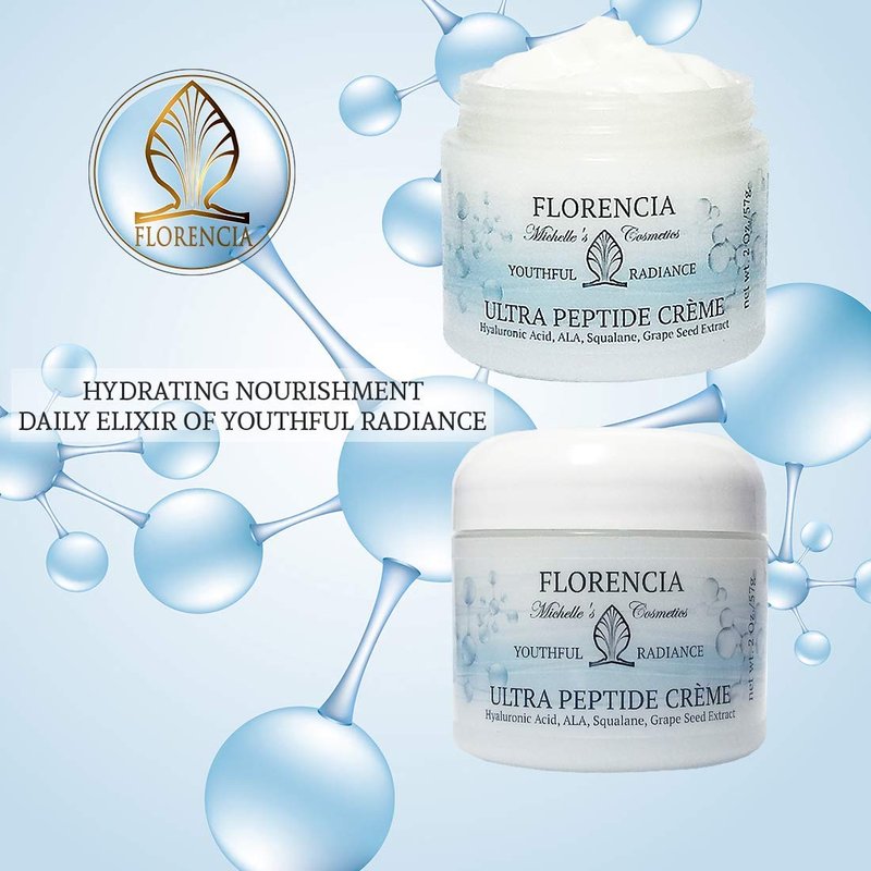Florencia Ultra Peptide Cream. Nourishing Face Moisturizer. Hyaluronic Acid, Peptides, Matrixyl 3000; Deeply Hydrates, Firms, Improves Fine Lines; Natural, Organic, Vegan, 2 OZ