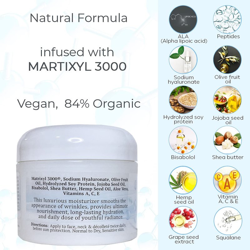 - INFUSED WITH MATRIXYL 3000 - Our collagen cream is infused with Matrixyl 3000, a wrinkle-fighting wonder, an anti-aging PEPTIDE comprised of two proteins. Clinically tested results of this "powerhouse" Peptide shows: 35% - 40% reduction of wrinkles, 16.6% increase in lifting effects within 2 months of daily use. Our lightweight collagen peptide moisturizer will make your skin glow.