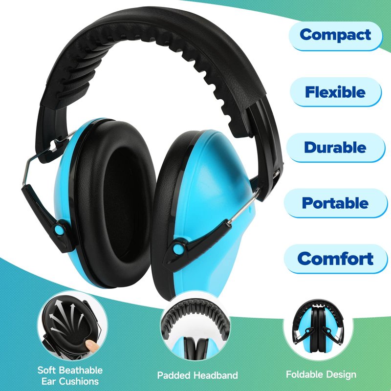 - ๐งณCompact Folding Design for Carrying: The safety earmuffs for kids with a bright color design, which can increase visibility. The noise reduction ear muffs fold up nicely with convenient portability, to fit in a backpack or traveling bag. It is the first choice for children when traveling or playing.