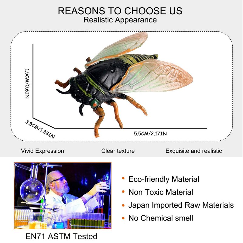 Flormoon Realistic Animal Figures Cicada Figurines Insect Toy, Science Project, Cake Topper, Early Educational Toys Birthday for Toddlers Kids Age 3 4 5