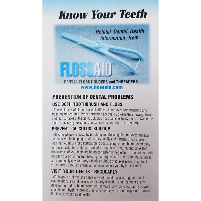 Flossaid Dental Floss Holder - 4 Pack -The Original FLOSSAID Dental Floss Holder is an excellent dental hygiene tool. With it's angled head and long handle, not one tooth space is neglected or incompletely flossed. FLOSSAID "makes flossing easy". Assorted color - colors vary from the picture.