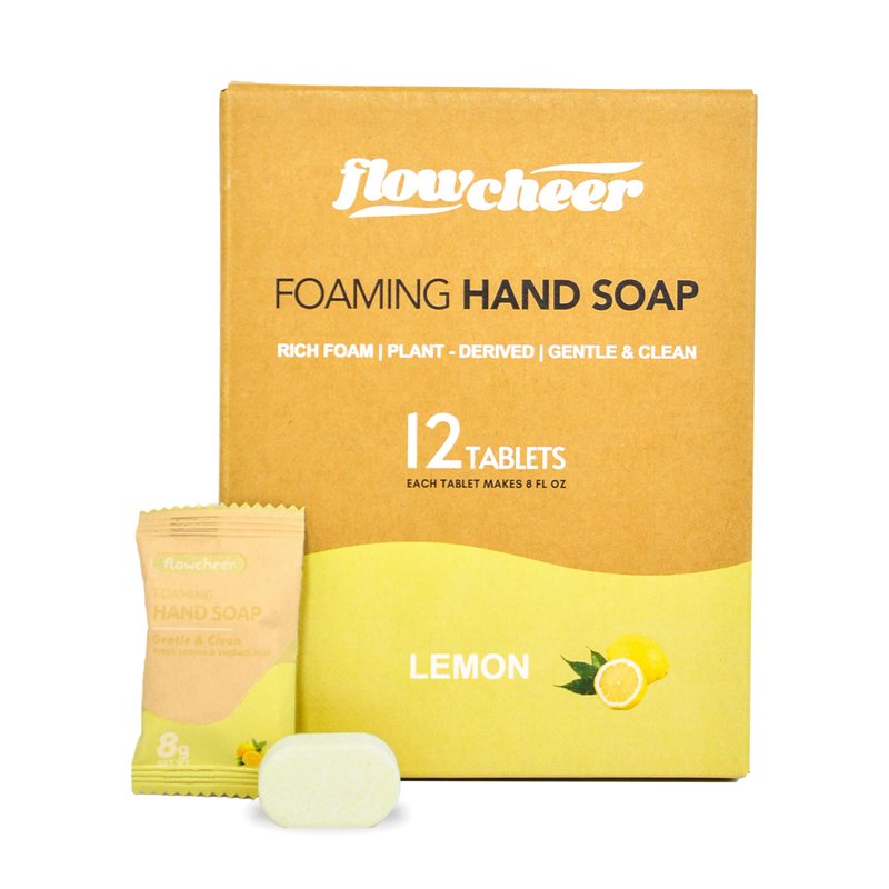 flowcheer Foaming Hand Soap Tablet Refills-12 pack Makes 96 fl oz (12 x 8 fl oz Bottles)- Lemon Scented Hand Wash Soap Refills Tablets for Zero Waste Eco Friendly Cleaning Supplies