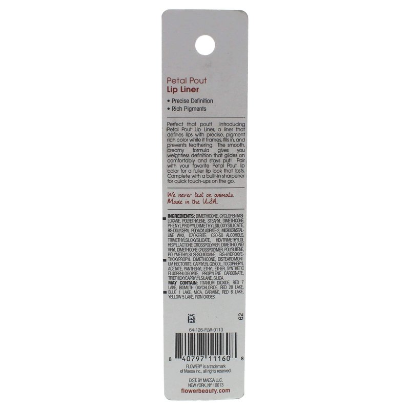 Flower Beauty Petal Pout Lip Liner - Smooth & Creamy Lip Liner with Pigment Rich Color, Prevents Feathering of Lip Color, Comes with Built-in Sharpener (Rose)