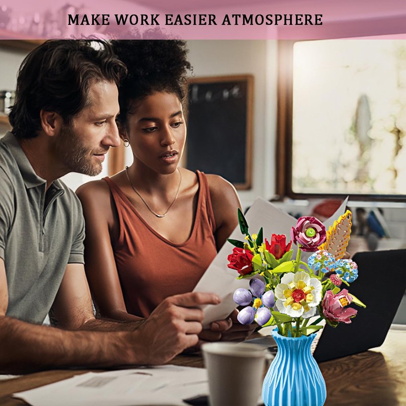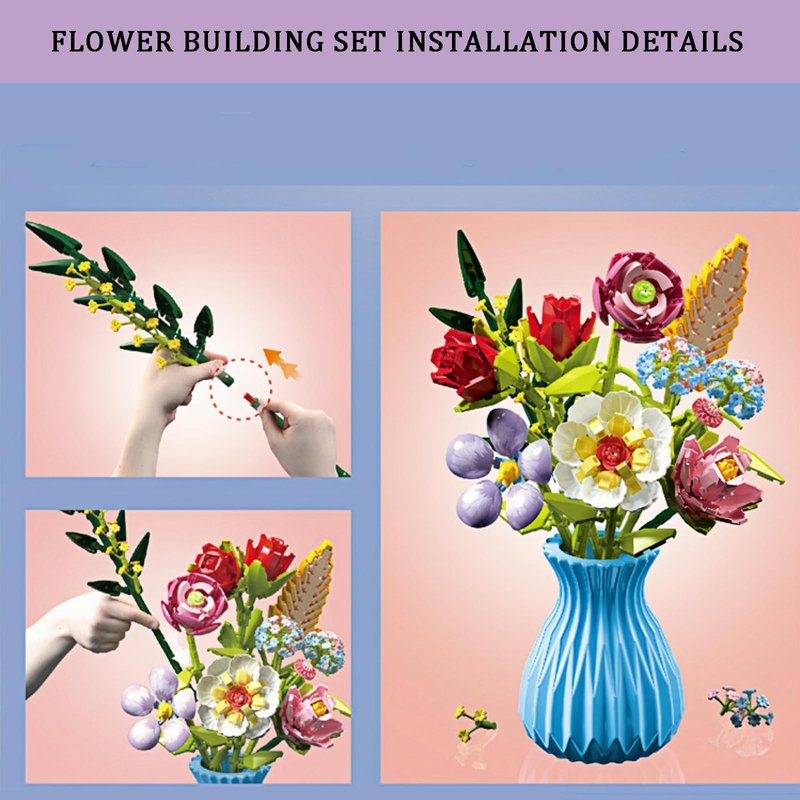 - 🌹 BOUQUET BUILDINGS WITH VASE: Our bouquet building blocks come with a vase, no need for you to buy an additional vase. And the simplicity of the vase and the vibrant flowers are eye-catching.