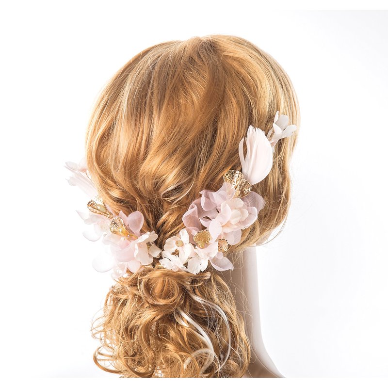 - Hand-wired Swarovski crystals and rhinestones delicately frame the headpiece for a nature-inspired look.