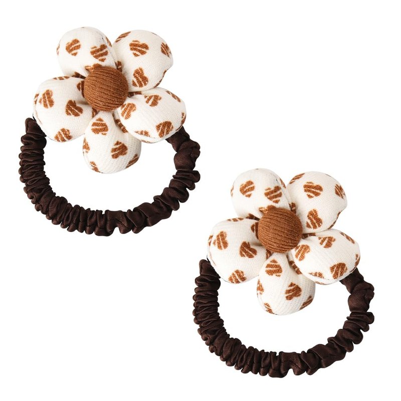 Flower Hair Scrunchies for Girls Cute Hair Ties for Toddler Girls Elastic Hair Bands for Kids Ponytail Holders for Women Hair Accessories for Teens Hair Elastics with Flowers Rubber Bands 2Pcs