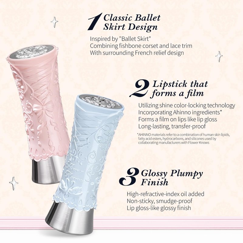 - Semi Sheer Shine Lip Gloss Stick:Experience the Flower Knows Swan Ballet Shine Solid Lip Gloss!This gloss quickly forms a smooth layer with high-shine locking technology,ensuring no fading or stickiness for that perfect jelly-like pout