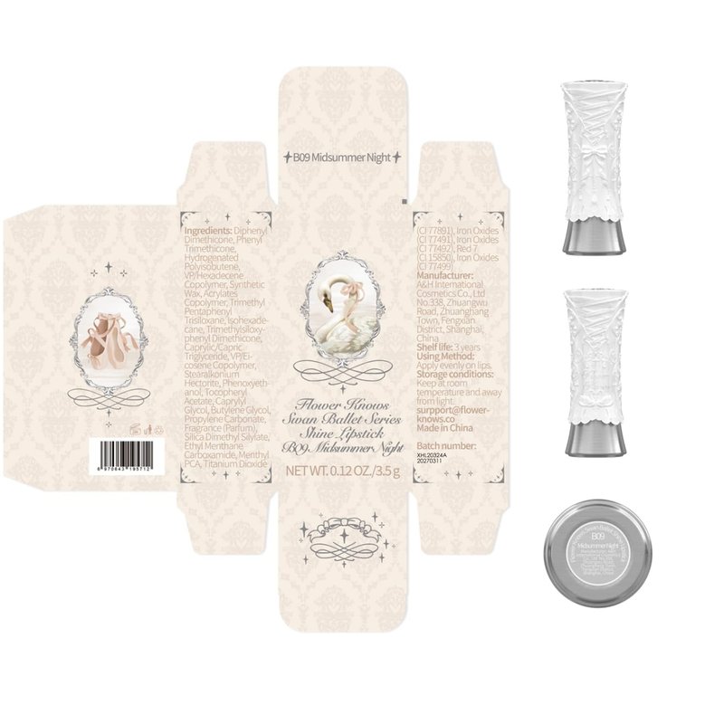 - Semi Sheer Shine Lip Gloss Stick:Experience the Flower Knows Swan Ballet Shine Solid Lip Gloss!This gloss quickly forms a smooth layer with high-shine locking technology,ensuring no fading or stickiness for that perfect jelly-like pout