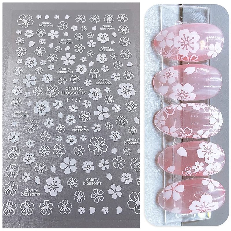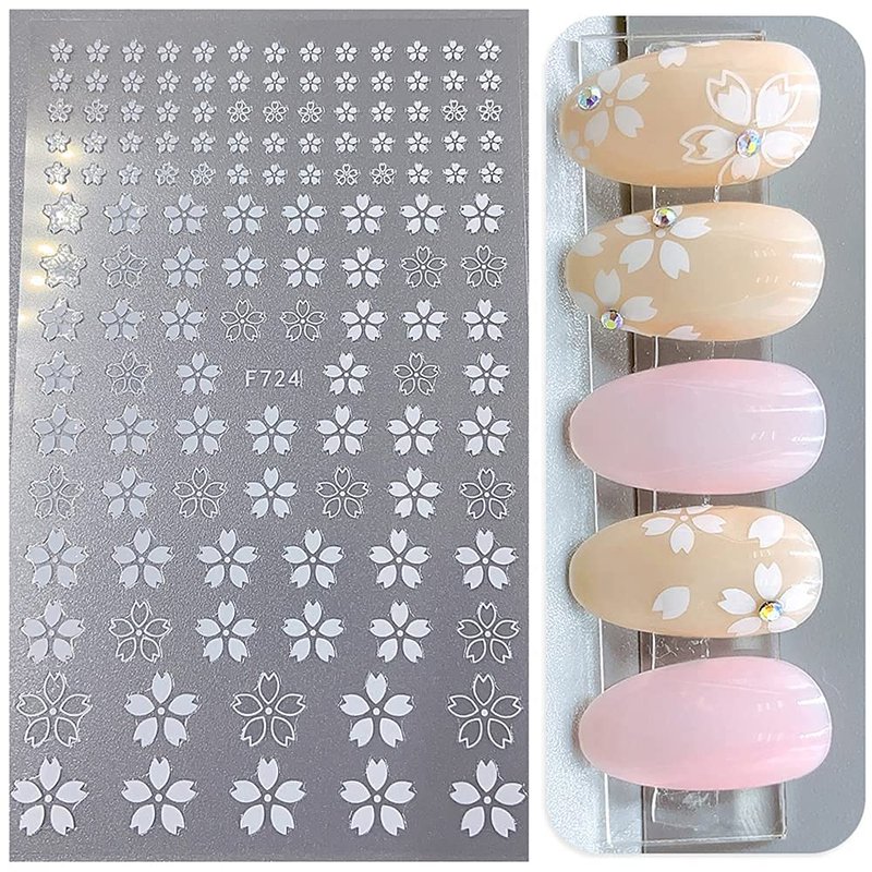Flower Nail Art Stickers Decals 4 Sheets White Cherry Blossoms Nail Art Supplies 3D Self-Adhesive Nail Decorations Accessories DIY Acrylic Nail Art Applique (white)