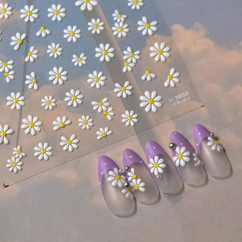 - Exquisite Design Nail Art Stickers: 1 sheet of 5D embossing carving patterns self-adhesive nail stickers give people an intuitive and advanced exquisite feeling. Floral daisy five-petal flower plant butterfly star elements design nail decals are perfect for decorations for your spring summer nails.
