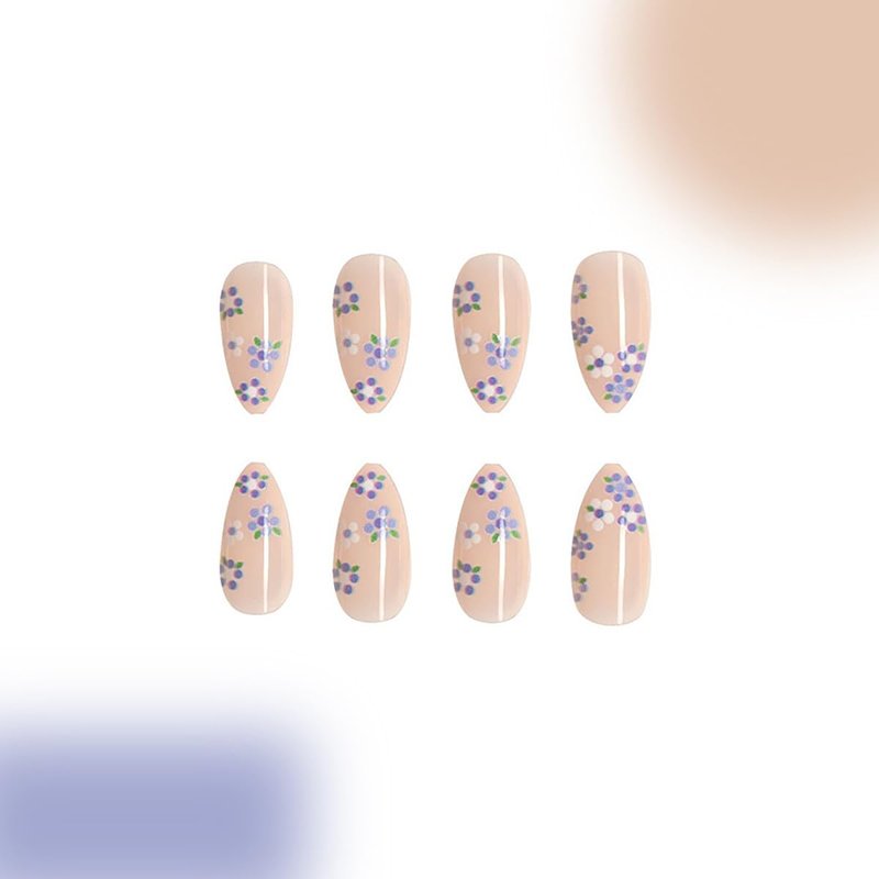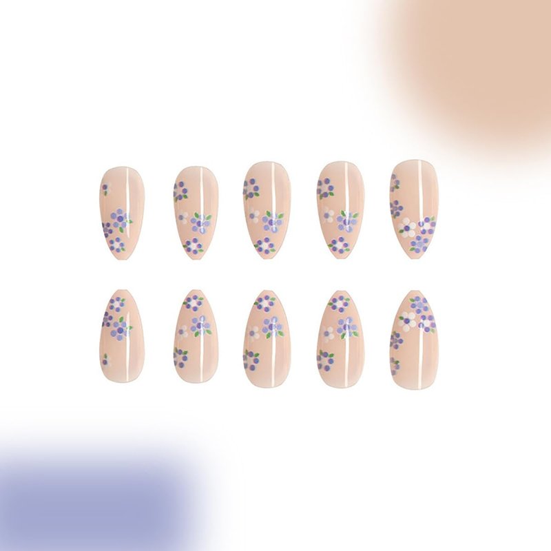 - Package: You'll get 24 pieces flower press on nails,1 mini nail file, 1 small wooden stick, 24 grain jelly glue. You can safely choose a fake nail that fits your finger size and DIY your desired nail shape.