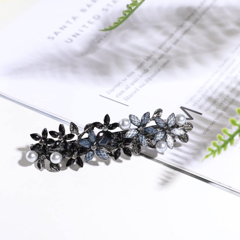 Flower Rhinestone Hair Barrettes for Women Fine Hair Glitter Sparkle Fancy Hair Clips for Women And Girls Elegant Pearl Barrettes (Black&Blue)