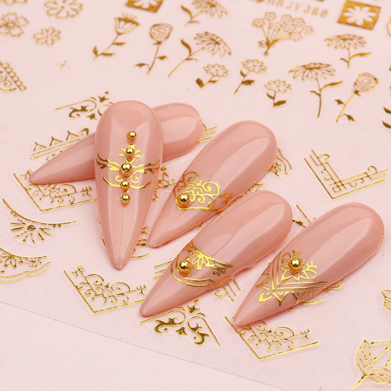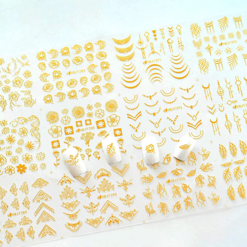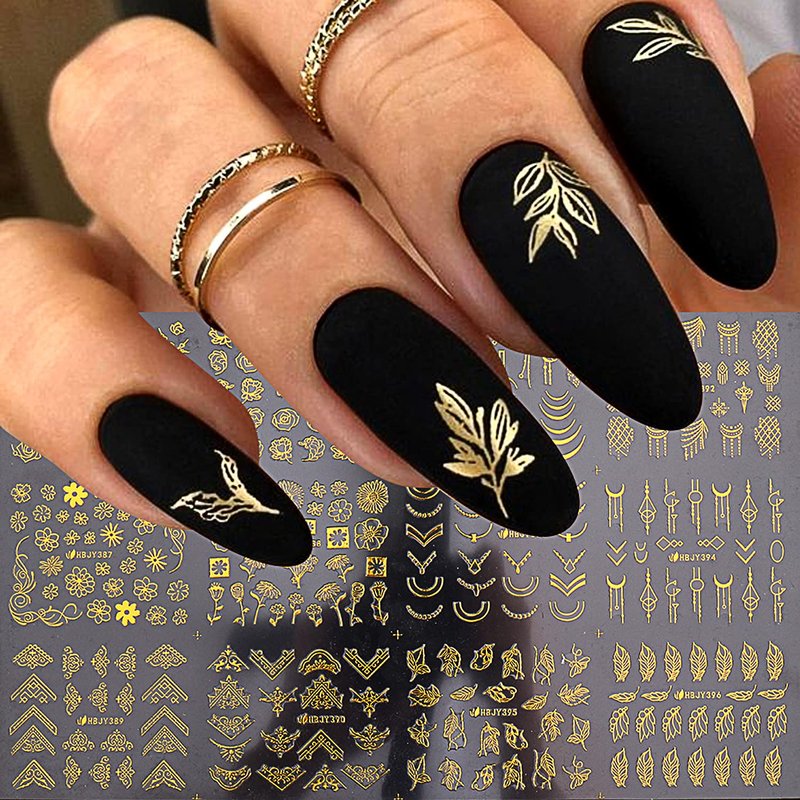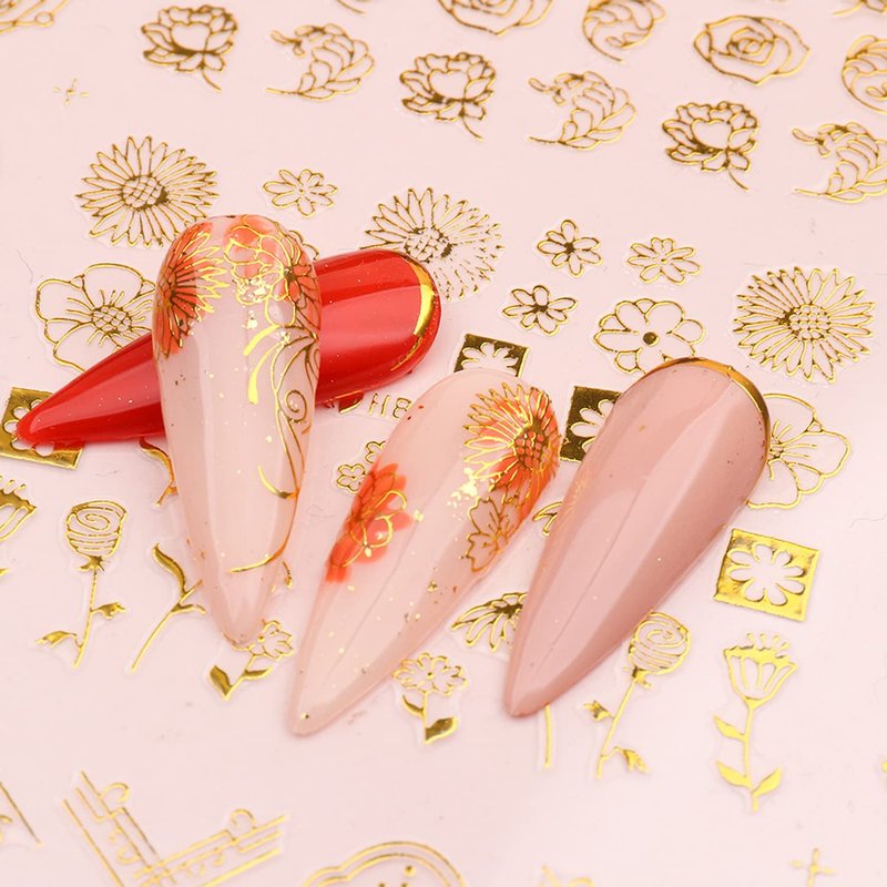 - Gold Flowers Nail Stickers: You will get 12 Style gold Nail Art Stickers, flower, line and leaf pattern to fit most natural or fake nails, you can well create a different nail effect. Satisfy your rich imagination of nail art DIY