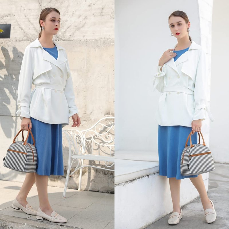 FlowFly Lunch Bag Tote Bag Lunch Organizer Lunch Holder Insulated Lunch Cooler Bag for Women/Men,White&Black Stripe