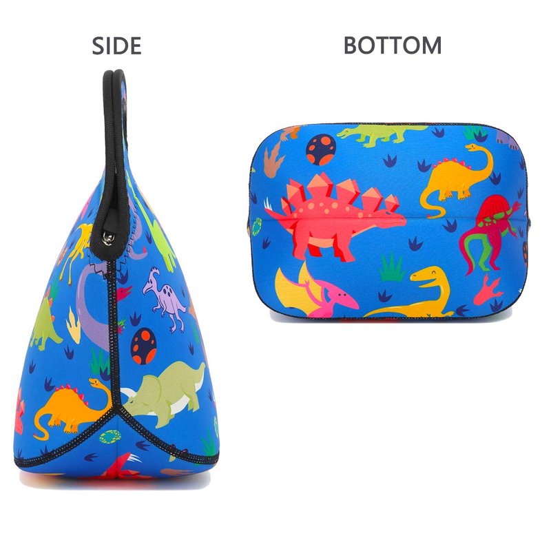 FlowFly Neoprene Kids Lunch box Insulated Soft Bag Mini Cooler Thermal Meal Tote Kit for Boys, Girls,Men,Women,School,Work, Office, Dinosaur