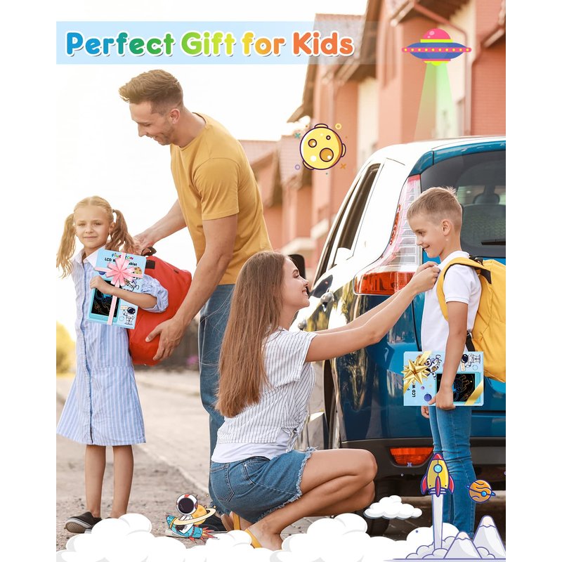 - 👨‍🚀 [PORTABLE AND LIGHTWEIGHT]: The Preschool toddlers can have all the pleasure, enjoy painting, count the numbers, spell phrases at any time and place (home, car, outside, airplane, school) with no longer making a mess on the ground or walls, especially the time they are at home. 10 inches of writing area, 0.26-inch ultra-thin design, 6 ounces weight, hardly feel the weight of the toys for 5 year old boys, which is convenient to carry with bag.