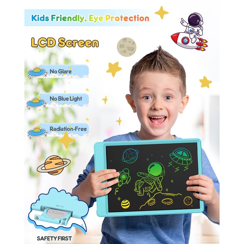 - 👨‍🚀 [NO BLUE LIGHT, PROTECT CHILDREN'S EYES, E-CO-FRIENDLY]: FLUESTON LCD writing tablet using highly sensitive pressure sensitive technology and smooth flexible LCD color screen, the lines are colorful, clear and eye-catching. The screen is not self-illuminating, and its optical writing characteristics are the same as papers. No dust, ink, ra-diation, g-lare, safe and hy-gienic, all shield eyes, be safe & comfortable when your kids create work for quite a while.