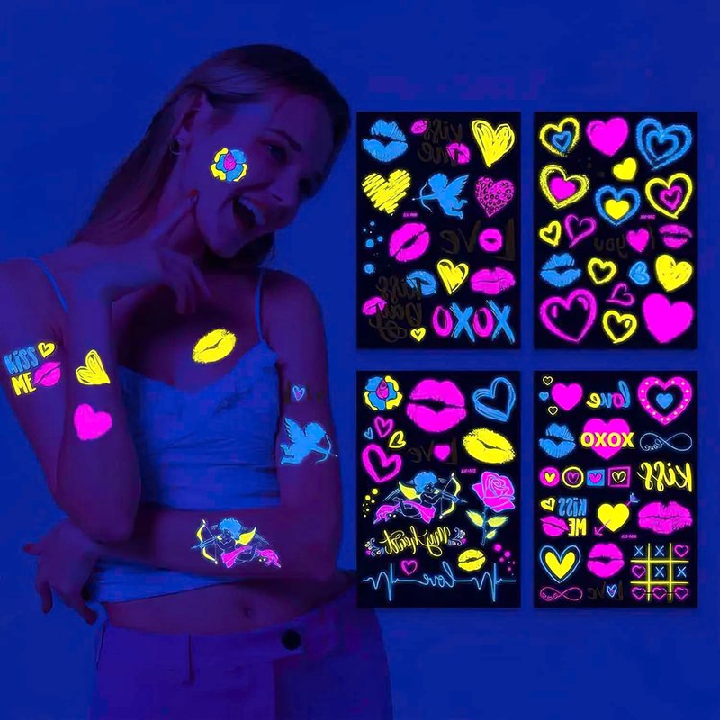 - Enhance Your Valentine's Day Costume With These Fluorescent Tattoo Stickers These Glow-in-the-dark Stickers Will Make Your Spooky Look More Charming And Memorable Theyre Easy To Apply And Long-lasting Making Them For Valentine's Day Halloween Parties